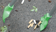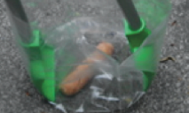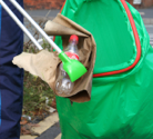 Picks up bottles+cans and grabs litter by the shovel load
