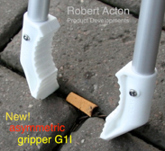 The .G2 “tip-toe” grips are 30mm.wide and will confidently retrieve detritus be it a needle or a glass bottle. Its rounded nose and scolloped profile also allows it to grab by the handle those tricky part filled 2-litre plastic milk bottles. Available at extra cost on BLP2 and BLP4 it is replaceable but not interchangeable with the other grippers as it fits onto a specifically formed tube end. Gripper Width 30mm. Material: Polyurethane.