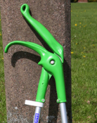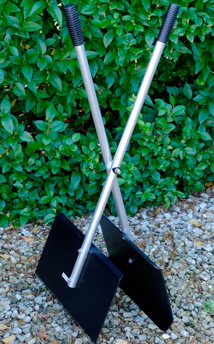 Aluminium alloy tubular limbs are cross-pivoted with an M8 stainless bolt and nyloc nut. Tubes are fitted with ribbed hand grips, the leaf compaction plates are attached with stainless fixings.