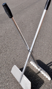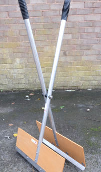 Leaf-fall handler 2(B’ham) Has 45cm.wide plywood Clapper-boards and s-steel scrappers. Weight 2.3kg.