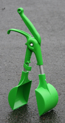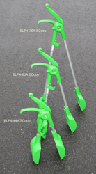 A new sub-compact Poop-Scoop has been added to the BLP4 line-up. Designated BLP4-44A.SC its just 44cm. high but still sports full size 11cm.x 11cm. buckets. More convenient to carry than its longer variants it may even get taken on the dog-walk. As usual a bag is fitted over the twin-bucket ends prior to engaging the offending deposit. With the scoops closed and deposit contained, the open end of the bag is turned inside out, the scoops opened and the enclosed part of the bag removed with its deposit safely contained. Provisional price: £20.00ea.+carriage+vat.